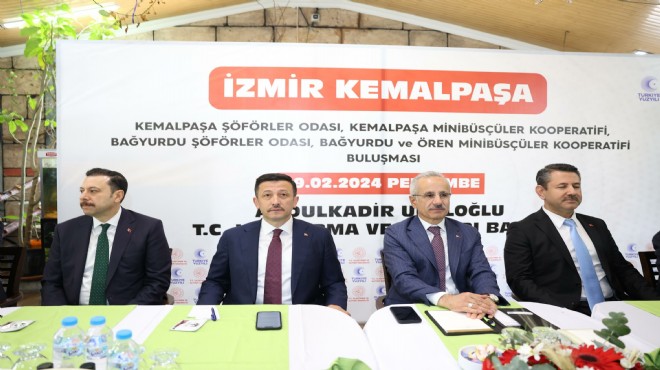 Ulaştırma ve Altyapı Bakanı Abdulkadir Uraloğlu, Kemalpaşa Lojistik Merkezi'ndeki basın açıklamasının ardından Kemalpaşa ve Bağyurdu Şoförler Odası, Kemalpaşa, Bağyurdu ve Ören Minibüsçüler ve Dolmuşçular Kooperatifi ile toplantı yaptı. Toplantıya AK Parti İzmir Milletvekili Mahmut Atilla Kaya, AK Parti İzmir Büyükşehir Belediyesi başkan adayı Hamza Dağ ve AK Parti Kemalpaşa Belediye başkan adayı Galip Atar katıldı. Toplantıda konuşan Bakan Uraloğlu, "Ben, Ulaştırma ve Altyapı Bakanıyım. Hastaneye ya da işinize gittiğinizde ulaşmanız gerekir. Evinize, tatile ve ziyaretlerinize ulaşmanız gerekir. Aynı zamanda haberleşmeniz de lazım. Haberleşme, kara yolu, demir yolu, havalimanı bakanlık dahilinde. İzmir'in ihtiyaçlarını genel anlamda biliyoruz. Yaptığımız işler var. Yapmamız gereken işler var. Yaptığımız işler içinde Torbalı'ya bir bölünmüş yol var. Sabuncubeli Tüneli'ni bitirdik, açtık. Buradan İstanbul'a 3,5 saatte gittiğimiz bir otoyolu yaptık. Buradaki Ankara yolunu tamamen bölünmüş yol haline getirdik. Şehir içi trafiği rahatlatacak bazı imalatları da geçmişte yaptık ama ihtiyaçlar bir taraftan da gelişip, değişiyor" ifadelerini kullandı.