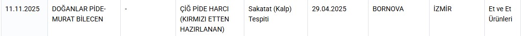 Bakanlığın açıkladığı güncellenen listede İzmir’in Bornova ilçesinde faaliyet gösteren Doğanlar Pide yer aldı.
