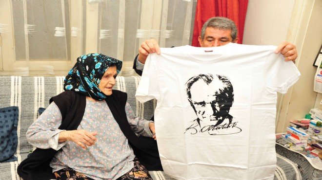 Atatürk’e yapılan saldırılara tepkisini göstermek için Başkan Çalkaya’dan Atatürk baskılı tişört isteyen 79 yaşındaki Pakize Görmez, “Pazara giderken bile bu tişörtümü giyeceğim” dedi.