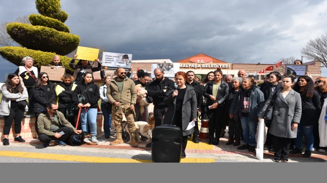 Kemalpaşa Belediyesi Armutlu Hayvan Barınağı'ndaki ölü köpek görüntülerine ilişkin İzmir Barosu Hayvan Hakları Komisyonu ve derneklerin çağrısı üzerine bir grup hayvansever, belediye binası önünde bir araya geldi.