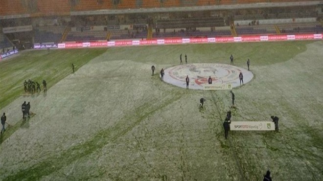 Kar yağışının yanı sıra görüş mesafesinin azalması nedeniyle saha kenarına gelen Özkahya, daha sonra iki takım oyuncularıyla soyunma odasına gitti.