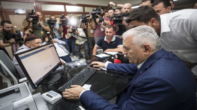 Menderes Belediyesi'ni de ziyaret eden Başbakan Yıldırım, burada imar barışı düzenlemesinden yararlanmak için belediyeye başvuran Cihangir Hançer ile Adem Yeşilyayla'nın işlemlerini gerçekleştirdi.