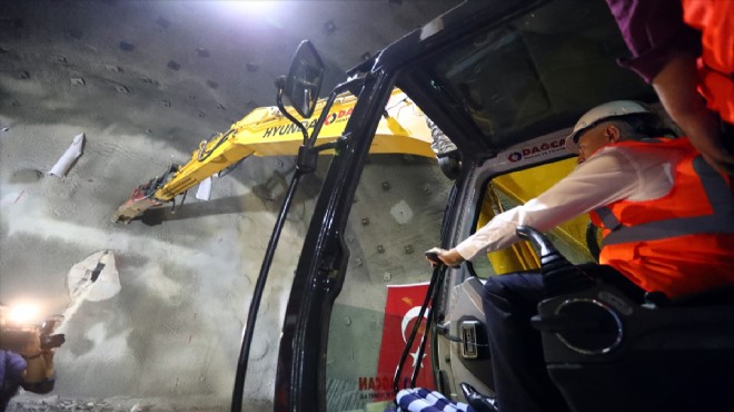 Manisa tarafından girdiği tünelde incelemede bulunan ve çalışmalar hakkında bilgi alan Yıldırım, operatör desteğiyle iş makinesi kullanarak tüneldeki duvarda delme işlemini gerçekleştirdi.