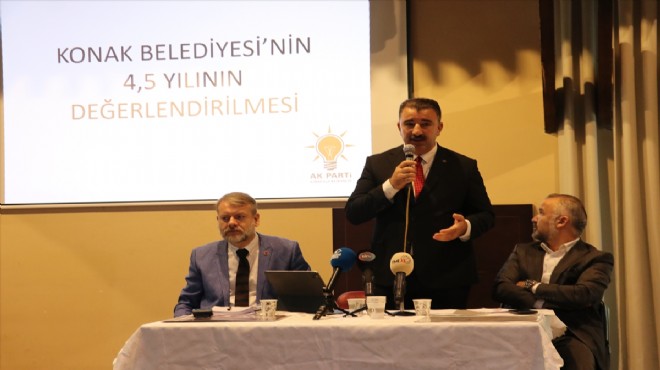 TCDD Sanat Galerisi'nde düzenlenen toplantıda Başdaş, Konak Belediyesinin 4,5 yıllık hizmetleri hakkında açıklamalarda bulundu.