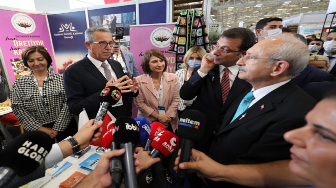 Gaziemir Belediye Başkanı Halil Arda, belediyenin standını ziyaret eden CHP Genel Başkanı Kemal Kılıçdaroğlu ve İstanbul Büyükşehir Belediye Başkanı Ekrem İmamoğlu’na projelerini anlattı. Başkan Arda, Kılıçdaroğlu ve İmamoğlu’na yaşama geçirdiği Porta Gaziemir, Sosyal Market projeleri ve ekonomik yönden dezavantajlı yurttaşlara destek vermek, kadın istihdamına katkı koymak amacıyla Gaziemir Gönüllü Kadınlar Derneği ve Gaziemir Üretici Kadınlar Kadın Girişimi Üretim ve İşletme Kooperatifi’yle birlikte yürütülen çalışmaları anlattı.