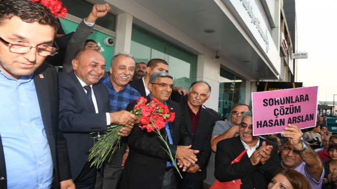Ellerinde döviz ve pankartlarla sloganlar işliğinde oldukça yoğun destekçi grubuyla belediye önünden CHP Çiğli başkanlık binasına yürüyen Çiğli Belediye Başkanı Hasan Arslan’a her kesimden destek geldi. “Çiğli Hasandır, Hasan Kalacak”, “Halkçı Başkan Hasan Arslan”, gibi sloganlar eşliğinde ilçe binası önüne gelen Başkan Hasan Arslan önce dosyasını CHP Çiğli İlçe Başkanı Mert Özcan’a teslim etti.