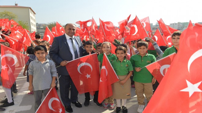Çiğli Belediye Başkanı Hasan Arslan Cumhuriyet Bayramının daha coşkulu kutlanması amacıyla Çiğli’de bulunan 44 ilkokul ve ortaokulda öğrenim gören 20 bin öğrenciye Türk bayrağı dağıttı. Başkan Arslan, ilkokul ve ortaokulları ziyaret ederek çocuklarla buluştu. Öğrencilerle sohbet eden Başkan Arslan, hepsine Türk bayrağı hediye etti. Öğrenciler, bayrakları büyük sevinç ve coşkuyla karşıladılar. Okul yönetimlerinin de memnuniyet duyduğu bayrak dağıtım sonrası hem öğrenciler hem de okul yöneticileri Başkan Arslan’a teşekkürlerini ilettiler.