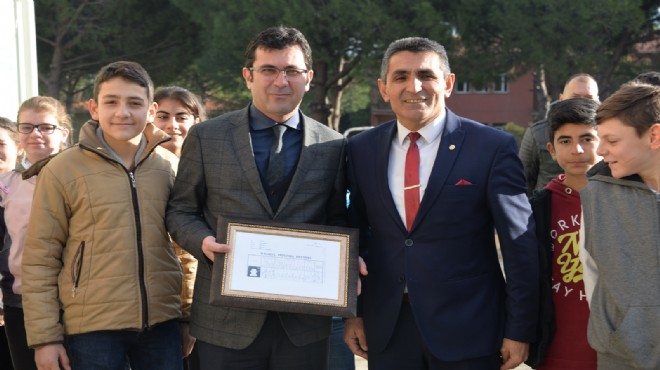 Kizir konuşmasında ayrıca okul için yaptığı destek ve katkılardan dolayı Belediye Başkanı Mehmet Gönenç’e teşekkür etti. Daha sonrada Başkan Gönenç’e İlkokul diplomasının çerçevelenmiş halini armağan ederek bir sürpriz yaptı. İlkokul diplomasını alan Başkan Gönenç ise bu sürpriz sonrasında oldukça duygulandı. Burada bir konuşma yapan Başkan Gönenç; “Ben 5 yıl eski okulda okudum ve buradan mezun oldum. Birçok arkadaşım burada yaşıyor. Ve hatta çocukları bu okulda okuyor. İlkokul numaramı hatırlıyorum, bu diplomada da yazıyor 309. Bu sürpriz karşısında çok mutlu oldum. Çok teşekkür ediyorum” dedi.