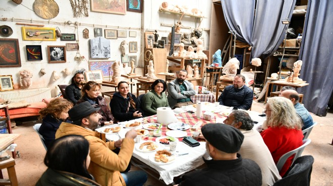 Kültür sanat alanındaki çalışmaların titizlikle sürdürüldüğü Çiğli’de, Başkan Utku Gümrükçü Ekin Erman Atölyesi’ni ziyaret ederek heykeltıraş Ekin Erman, seramik sanatçıları, mimar ve ressamlardan oluşan sanat üreticileri ile kahvaltı yaptı. Atölyenin ihtiyaçları ve devam eden çalışmaları hakkında bilgi alan Başkan Gümrükçü, Kaklıç Sanat Köyü Projesinin 2022 yılı hedefleriyle ilgili değerlendirmelerde bulundu.