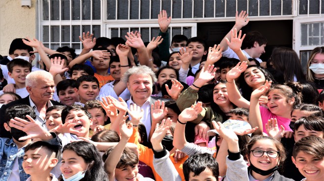 Mahalle gezileri ile vatandaşların isteklerini dinleyen Bornova Belediye Başkanı Dr. Mustafa İduğ, Ümit Mahallesi gezisi sırasında uğradığı 100. Yıl Niyazi Ersoy Orataokulu’nda çocuklara şenlik müjdesi verdi.