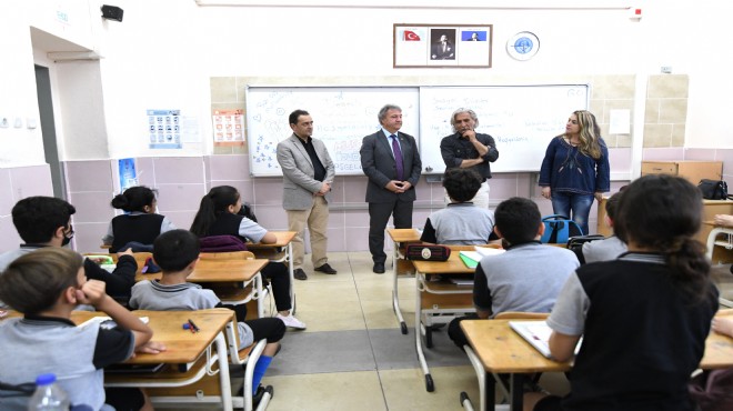Okul Müdürü İlker Kavlak’la sınıfları ve okul bahçesini gezen İduğ, Bornova Belediyesi olarak taleplerini İlçe Milli Eğitim Müdürlüğü ile işbiriği içinde karşılamaya hazır olduklarını söyledi.