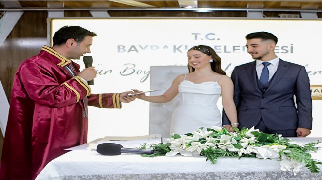 Başkan Önal, "Bayraklı Belediye Başkanı olarak ilk nikahı kıymanın heyecanını sizlerle birlikte yaşıyorum. Cumhuriyetimizin en büyük değerlerinden biri olarak gördüğümüz kadınlarımızın daha özgür ve eşit olduğu bir toplumu arzu ediyoruz. Aile birliğimizin temelinde kadınlarımız var. Onun için aile cüzdanını kadınlarımıza teslim ediyorum, Cumhuriyetimize ve onun değerlerine sahip çıkacağınız yaşamınızda ömür boyu mutluluklar diliyorum" dedi.