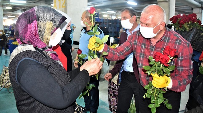 Kemalpaşa Belediye Başkanı Rıdvan Karakayalı, tüm annelerin Anneler Günü’nü kutlayarak, kendilerine hak ettikleri sevgi ve saygının gösterilmesi gerektiğini söyledi. Korona virüs salgınıyla mücadele kapsamında, sokağa çıkma yasağı nedeniyle annelerin gününü kutlamak için geçtiğimiz Cuma günü semt pazarını ziyaret eden Başkan Karakayalı, emekçi ve alışveriş yapan annelere gül dağıttı.