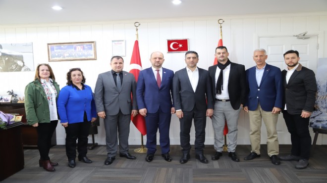 İzmir Balkan Göçmenleri Kültür ve Dayanışma Derneği (İzmir Bal-Göç) Olağan Genel Kurulu’nda güven tazeleyerek yeniden başkanlığa seçilen Abdurrahim Nursoy ve İzmir Bal-Göç Menderes Şube Başkanı Gürkan Altıntaş ile dernek yönetimi Menderes Belediye Başkanı Mustafa Kayalar’ı ziyaret etti.