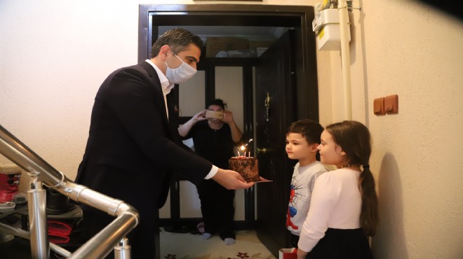 Menderes’te 23 Nisan Ulusal Egemenlik ve Çocuk Bayramı’nda doğan çocuklara Menderes Belediye Başkanı Mustafa Kayalar, meclis üyeleriyle birlikte sürpriz doğum günü kutlaması yaptı. Pasta ve hediye ile evlere giden Başkan Kayalar’ı kapıda gören doğum günü çocukları ve aileleri büyük bir mutluluk yaşadı.