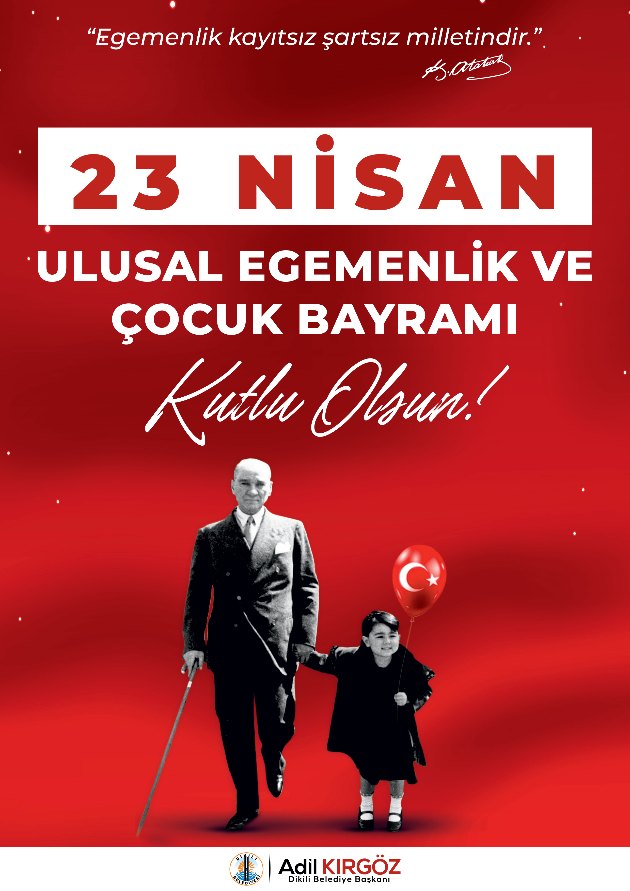 23 Nisan Ulusal Egemenlik ve Çocuk Bayramı kapsamında Dikili'de Atatürk Meydanı'nda çelenk sunuldu. Dikili Erdal İnönü Stadyumu’nda düzenlenen kutlama programlarınakatılan Dikili Belediye Başkanı Adil Kırgöz "Cumhuriyetimizin temellerinin atıldığı Türkiye Büyük Millet Meclisi’nin açılışının 104. yıl dönümünde bu anlamlı günü çocuklara armağan eden Ulu Önderimiz Gazi Mustafa Kemal Atatürk başta olmak üzere tüm yol arkadaşlarını saygı, minnet ve rahmetle anıyor, 23 Nisan Ulusal Egemenlik ve Çocuk Bayramı’nızı kutluyorum" dedi.