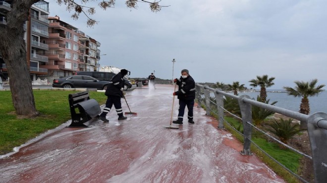 Koronavirüsün Türkiye’de görüldüğü ilk andan itibaren yoğun bir mücadele içerisinde olduklarını kaydeden Dikili Belediye Başkanı Adil Kırgöz, “Salgınla mücadelede dezenfektasyon çalışmalarımız başta olmak üzere, bilgilendirme ve sosyal yardımlarımızı aralıksız sürdürüyoruz. Salgın son bulana kadar da çalışmalarımıza devam edeceğiz. Temizlik İşleri Müdürlüğü ekiplerimiz tarafından ilçe merkezimiz başta olmak üzere, Çandarlı ve kırsal bölgemiz dahil 30 mahallemizdeki caddeler ve sokaklar ile 28 kamu kurumu, 40 ibadethane, bin 200 işyeri, 160 ticari taksi, şehir içi minibüs, s plakalı araç, 80 kamuya açık alan, park ve meydanda dezenfektasyon çalışmalarımızı gerçekleştirdik ve bu çalışmalarımıza devam ediyoruz” dedi.