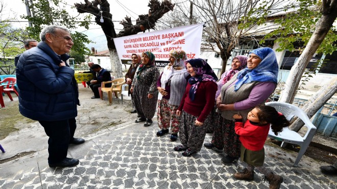 7 yaşındaki Ali Eren’den 70 yaşındaki Hatice Teyze'ye kadar gittiği her yerde ilgi ve sevgiyle karşılanan İzmir Büyükşehir Belediye Başkanı Aziz Kocaoğlu, köylülerin "Gelişinle sevindirdin, gidişinle üzdün bizi" ve "Onurunuzla geldiniz, onurunuzla gidiyorsunuz" türündeki veciz sözleriyle de hayli duygulandı.