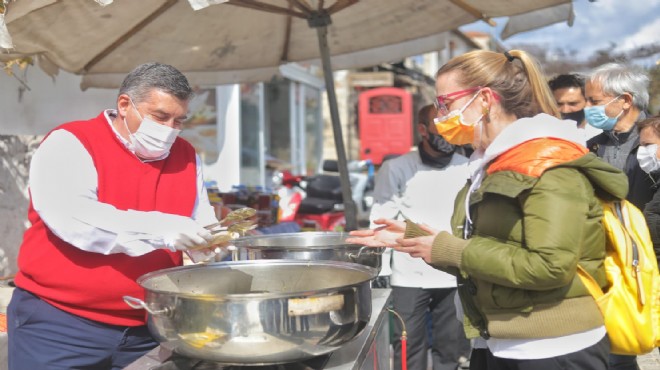 Etkinliğe katılan Çeşme Belediye Başkanı M. Ekrem Oran, soğan kavurarak, vatandaşlara ikram etti. Üreticilere yaptığı desteklerle adından sıkça söz ettiren Oran, “Mutfağımızın olmazsa olmazı soğan bu yıl tarlada kaldı. Soğanı ziyan etmemeliyiz. Çiftçilerimiz çalışıyor ama kazanamıyor, zarar ediyor. Bu soğanların tüketilmesi lazım. Bu düşünceden yola çıkarak, üreticilerimize destek vermek aynı zamanda soğanın faydalarına dikkat çekmek için böyle bir etkinlik gerçekleştirdik. Endemik bitkilerimizden olan Çeşmemiz’in beyaz soğanını korumak ve desteklemek amacıyla çalışmalarımıza devam edeceğiz” dedi.