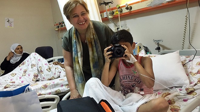 Daha önce evinde ziyaret ettiği yaz okulu kursiyerlerinden 10 yaşındaki Berk Ayaz Gül’ün aniden rahatsızlanarak hastaneye kaldırıldığını öğrenen Konak Belediye Başkanı Sema Pekdaş, minik çocuğu tedavi gördüğü İzmir Sağlık Bilimleri Üniversitesi Tepecik Eğitim ve Araştırma Hastanesi’nde ziyaret etti. Pekdaş, sinema ve fotoğrafçılığa olan ilgisiyle dikkat çeken Berk’e söz verdiği fotoğraf makinesini de hastanede hediye etti. Uzun zamandır hayalini kurduğu fotoğraf makinesine kavuşmanın sevincini yaşayan minik Berk, artık bol bol mutlu anları fotoğraflayacağını söyledi.