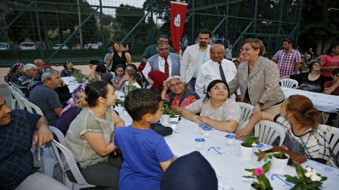 Okul bahçesine kurulan masalarda buluşan yüzlerce kişi aynı anda orucunu açtı. Konak Belediye Başkanı Sema Pekdaş’ın ev sahipliği yaptığı iftar yemeğine Cumhuriyet Halk Partisi (CHP) Konak İlçe Başkanı Çağrı Guruşçu, CHP Konak İlçe Kadın Kolları Başkanı Nurten Serhadbeyi ve mahalle muhtarları katıldı. Okunan ezanın ardından tüm davetliler Konak Belediyesi’nce ikram edilen çorba, İzmir köfte, pilav, ayran ve tatlıdan oluşan iftar mönüsüyle oruçlarını açtı.