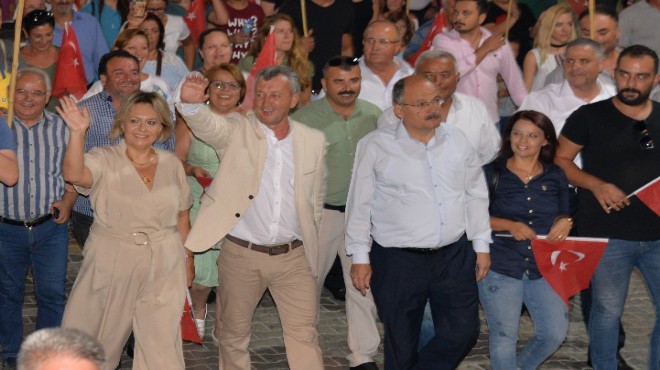 Cumhuriyet Meydanı’nda sona eren coşkulu Fener Alayı Yürüyüşünde Menemen Belediye Başkanı Tahir Şahin’e eşi Nurdan Şahin, CHP İlçe Başkanı Hürol Taklak, Belediye Meclis Üyeleri, Sivil Toplum Örgütleri Başkanları, Muhtarlar, Gaziler ve vatandaş eşlik etti. Menemen Belediye Bandosu eşliğinde yürüyüş gerçekleştiren bin kadar vatandaş, ellerindeki Türk Bayraklarını dalgalandırarak marşlar söylediler. Korteje renk katan yurt dışı ve yurt içinden halk oyunları ekipleri, şenliklerin ilk gecesinde Cumhuriyet Meydanı’nda sundukları gösterilerle büyük beğeni topladılar.