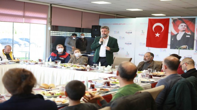 Öncelikli işlerden birinin apartman görevlilerinin iş sorunu olduğunun altını çizen Başkan Sandal, "Sayıyı netleştirdikten sonra Büyükşehir Belediyemiz ve Bayraklı Belediyesi olarak sorunu çözeceğiz. Çünkü siz bizim için kıymetlisiniz. İyi adam olmak, doğru adam olmak, makam mevki veya para pulla olmaz. Adam olmanın tek yolu maneviyat ve marifettir. Siz alın terinizle, çocuklarınızın rızkı için hiçbir yola sapmadan, emeğinizle işinizi yapan insanlarsınız. Bizim gözümüzde sizden daha değerli ve onurlu kimse yok. Her koşulda, tüm ihtiyaçlarınızda yanınızda olacağımıza söz veriyorum. Biz bugünler için birbirimize lazımız. Bizi kimsenin etnik kimliği, siyasi kimliği ilgilendirmiyor. Kime oy verirse versin, Neye inanırsa inansın, nereden geliyorsa gelsin bizi ilgilendirmez. Biz vatandaşlarımızın ihtiyaçlarına, dertlerine bakarız. Karamsarlığa kapılmayın. Bu süreci hep birlikte atlatacağız. Hiçbir endişeniz, korkunuz olmasın. Çocuklarınız çocuklarımız, sizin derdiniz bizim derdimiz. Bizim için çok kıymetlisiniz" dedi.