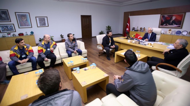 Göztepe Spor Kulübü’nün unutulmaz futbolcularından “Cango” lakaplı Cenap Öztezel ve Karabağlar Göztepe Taraftar Derneği üyeleri, Karabağlar Belediye Başkanı Muhittin Selvitopu’nu ziyaret etti.
