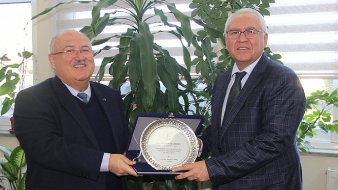 Katip Çelebi Üniversitesi Atatürk Eğitim ve Araştırma Hastanesi Başhekimi Prof. Dr. Nurettin Ünal, hastanenin çevre düzenlemesine katkıda bulunan Karabağlar Belediye Başkanı Muhittin Selvitopu’na teşekkür ederek plaket verdi.