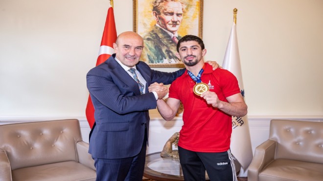 İspanya’da yapılan 23 Yaş Altı Dünya Güreş Şampiyonası’nda altın madalya kazanarak tarih yazan İzmir Büyükşehir Belediyesi Gençlik ve Spor Kulübü güreşçisi Kerem Kamal, İzmir Büyükşehir Belediye Başkanı Tunç Soyer’i ziyaret etti. Başkan Soyer, Kerem Kamal’ı tebrik ederek, “Çok güzel başarılara imza attın. Umudu ayakları yere basar hale getirdin. Bu, çok kıymetli. Başarıların sadece senin için değil, tüm çocuklar, tüm ülke ve senden sonraki nesiller için çok önemli. Onlar için rol modelsin” dedi.
