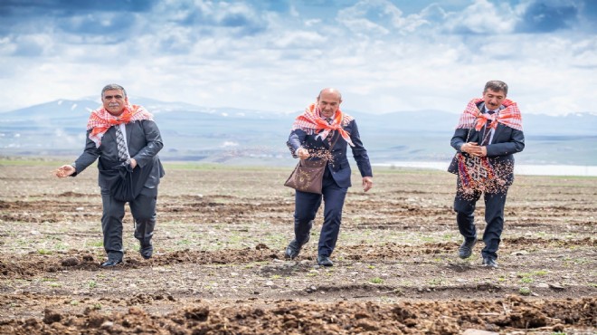 Dağıtımın ardından ekim yapılacak tarlaya gidildi. Burada konuşan İzmir Büyükşehir Belediye Başkanı Tunç Soyer, “Yaptığımız şey bugün biraz daha bayrama ve kutlamaya dönüştü. Gerçekten Anadolu öyle bir coğrafya ki biz İzmir’de hasada hazırlanıyoruz burada ekime geldik. Bir tarafta hasat bir tarafta ekim yapılabilen olağanüstü bir coğrafyada yaşıyoruz. Ve bu yoksulluk bu kuraklık hiçbirimizin hak etmediği bir tablo. Emin olun ki bu bir kader değil. Çünkü bu bereketli toprakların bereketini birileri hortumlasın diye onlara aktardılar. Buradaki küçük üreticiyi yoksullaştırdılar. Bu bir politik, siyasi bir tercihti. Bu tercihin sonuçlarını yaşıyoruz bugün Anadolu’da. Karşılaştığımız yoksulluk, kuraklık tamamen yanlış tarım politikalarının sonucudur, bir kader değildir. Onun için 'başka bir tarım mümkün' diyoruz. Bu bereketli toprakların bereketiyle karnını doyuran, yüzlerce yıldır atasından devraldığı topraklarda huzurlu yaşamını devam ettiren, sağlıklı, güle oynaya hayatını devam ettiren köylümüz, üreticimiz artık üretimden vazgeçme noktasına, hayvanını kesme noktasına gelmiştir. Biz buğday ve arpa tohumu getirirken aslında buraya umudu yeşertmeye geldik buraya. Çünkü biliyoruz ki bu mümkün. El ele verirsek başarırız. Bu yanlış tarım politikalarını değiştirip küçük üreticiden, köylüden yana uygulama yaparsanız işte bu mümkün. Ne demiş Mustafa Kemal Atatürk? Köylü milletin efendisidir. Neden demiş? Çünkü bilmiş ki eğer kendi kendine yeten bir ekonomi yaratabilirse bir memleket dışarıya muhtaç olmaz ve o zaman kalkınmanın, büyümenin önü açılır. Ne yaptık köylümüzü? Tunuslu, Faslı, Kanadalı üreticinin önünde ezdirdik. Mercimeği Kanada’dan sıfır vergiyle ithal ediyoruz. Sen niye buradaki üreticinin vergisini sıfırlamıyorsun? Bu nasıl bir kafa, nasıl bir tercih? Bunların hepsi değişecek. Bunların hepsini değiştirmeye muktediriz. 'Başka bir tarım mümkün'. Yine bu topraklarda kadim kültürün evlatları olarak güler yüzle, sağlıkla, huzurla yaşayacağımız günleri hep beraber kuracağız” açıklamasını yaptı.