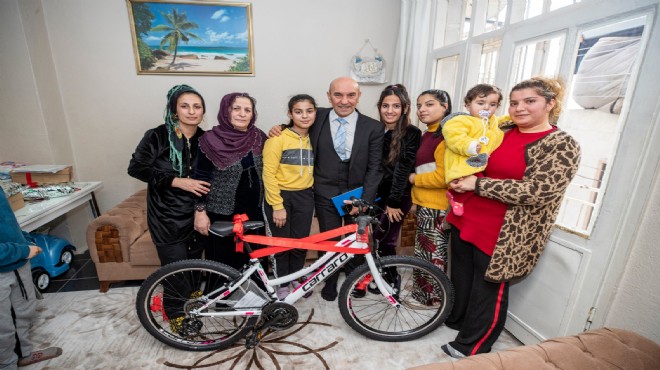 İzmir Büyükşehir Belediye Başkanı Tunç Soyer bugün Konak 2. Kadriye Mahallesi'nde oturan 13 yaşındaki Ayşe Deniz’i evinde ziyaret ederek Deniz’e bisiklet hediye etti. İzmir Büyükşehir Belediyesi başarılı 100 öğrenciye bisiklet dağıtma kararı almıştı.
