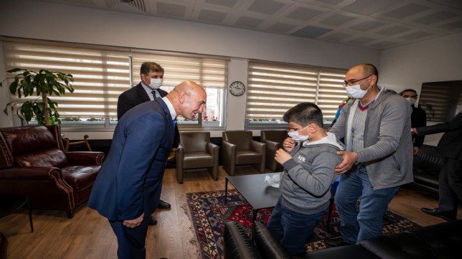 Kusursuz kulağa (absolut kulak) sahip doğuştan görme engelli Bager Çalışcı, İzmir Büyükşehir Belediye Başkanı Tunç Soyer'i makamında ziyaret etti. 9 yaşındaki Bager’e, babası Mehmet Çalışcı ve müzik öğretmeni Caner Keser eşlik etti.
