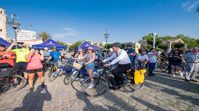 Bisikletçiler Konak Meydanı’ndan başlayarak Mustafa Kemal Sahil Bulvarı üzerinden İnciraltı Kent Ormanı’na kadar yaklaşık 7,5 kilometre pedal çevirdi.