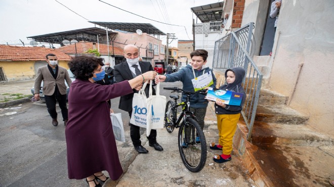 Büyükşehir Belediyesi’nin 23 Nisan Ulusal Egemenlik ve Çocuk Bayramı etkinlikleri kapsamında düzenlediği “sağlık çalışanları” konulu öykü yarışması sonuçlandı. Başkan Tunç Soyer ve eşi Neptün Soyer koronavirüs salgını nedeniyle evinden çıkamayan çocuklara sürpriz ziyaretler yaparak yarışmanın ödülü olan bisikletleri teslim etti.