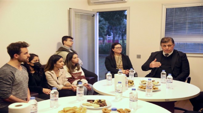 Karşıyaka Belediyesi tarafından ilçede yaşayan ileri yaştaki vatandaşlara yönelik başlatılan dijital okuryazarlık ve İngilizce kurslarında eğitmen olarak görev alan Katip Çelebi Üniversitesi öğrencileri ile buluşan Başkan Tugay, duyarlılıkları sebebiyle gençleri tebrik etti. Kurslara gönüllü olarak katılan ve ileri yaştaki vatandaşlara banka işlemleri ve diğer dijital işlemlerinin yanı sıra sosyal medya kullanımında eğitim ve destek veren öğrencilere teşekkür eden Cemil Tugay, yaptıkları katkının önemine dikkat çekti. Baskan Tugay gençleri çevre konusunda gönüllü çalışmalar yapmaya da davet etti.