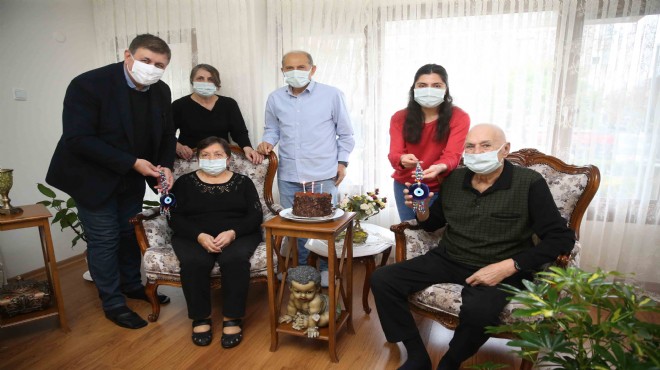 Ayrıca Karşıyaka Belediyesi ekipleri, 14 Şubat Sevgililer Günü dolayısıyla, Sosyal Yardım İşleri Müdürlüğü’nde kaydı bulunan ve 40 yıldan fazla süredir evli olan 16 çifte daha çiçek ve nazar boncuğu hediye etti.