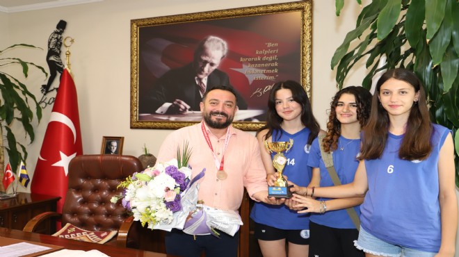 Ödemiş Belediye Spor bünyesinde geçtiğimiz yıl kurulan kız voleybol takımı iki sezondur İzmir süper lig de mücadele ediyor. Farklı kategorilerde mücadele eden kızlar, bu sezon kupayı kazanarak başarı elde etti. Küçük Kızlar kategorisinde il 4.’sü olan kız voleybol takımı antrenör Adnan Büyükkırlı ile birlikte Belediye Başkanı Mustafa Turan’ı makamında ziyaret etti. Başkan Turan; “ Ödemişliler olarak kızlarımızın başarısından onur duyuyoruz. Sezon boyunca çok iyi çalışıp, iyi bir performans sergileyerek mücadele eden bütün sporcularımızı ve hocalarımızı kutluyorum. Bu yıl ilk kupamızı aldık. Önümüzdeki yıllarda yolumuzun şampiyonluk olacağına inanıyorum” dedi.