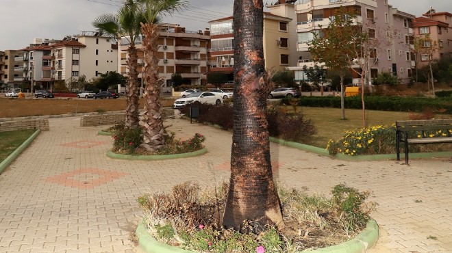 Vandallığın son kurbanı İzmir'in Ödemiş ilçesindeki Zafer Mahallesi’nde yer alan Eğitim Şehitleri Parkı’ndaki palmiye ağacı oldu. Parkın ortasında bulunan ağaç, kimliği belirsiz kişi ya da kişilerce yakıldı.