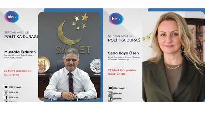 DEVA Partisi İzmir Kurucu İl Başkanı ve Milletvekili Aday Adayı Seda Kaya Ösen saat 20.30, Saadet Partisi İzmir İl Eski Başkanı ve Milletvekili Aday Adayı Mustafa Erduran ise saat 21.15'ten itibaren Sercan Avcı'nın soruları eşliğinde ilçe, kent ve ülke gündemine dair önemli açıklamalarda bulunacak.