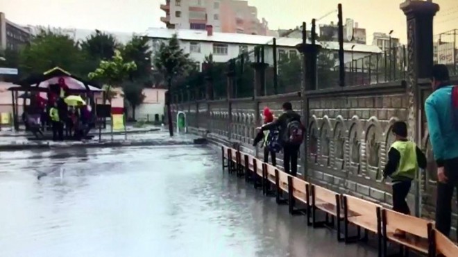 Kent merkezindeki Alpaslan İlkokulu'nun bahçesi de suyla doldu.