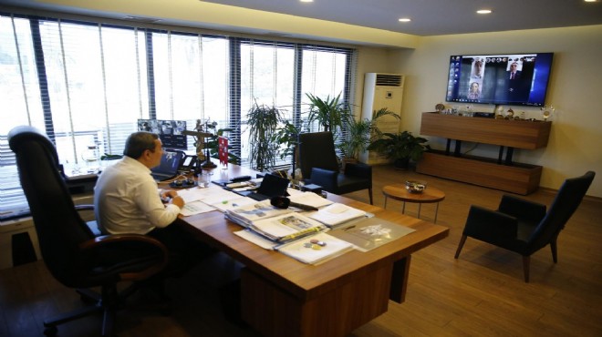 Koronavirüs önlemleri kapsamında geçtiğimiz hafta başından itibaren nöbetleşe çalışma sistemine geçilen Konak Belediyesi’nde bürokratların toplantıları da video konferans ile yapılıyor. Salgınla mücadelede alınan önlemler ve belediye müdürlüklerinin yaptığı çalışmaların değerlendirildiği haftalık toplantı da Konak Belediye Başkanı Abdül Batur’un davetiyle video konferans yöntemi ile yapıldı. Başkan Batur, video konferansta Konak ile ilgili müdürlerden geniş kapsamlı bir rapor aldı.