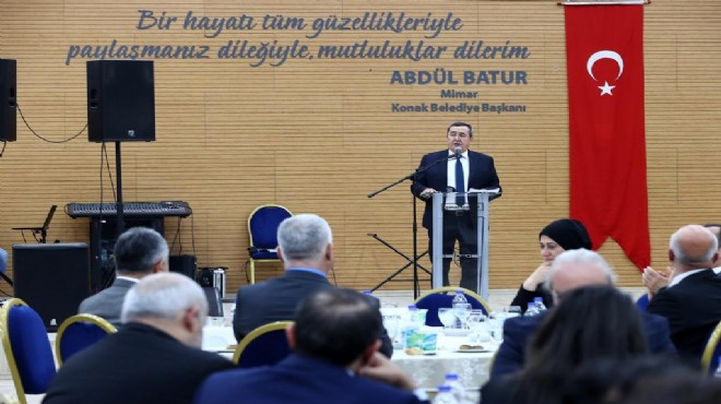 Konak Belediye Başkanı Abdül Batur, iftar yemeğinde yaptığı konuşmada, ramazan ayında birlik, beraberlik ve dayanışmanın daha da önem kazandığını dile getirdi. Bu yıl iftar sofralarını deprem bölgesine taşıdıklarını ifade eden Başkan Batur, bu dayanışmayı büyük bir anlayışla destekleyen muhtarlara ve derneklere teşekkürlerini iletti. Başkan Batur, şöyle konuştu: