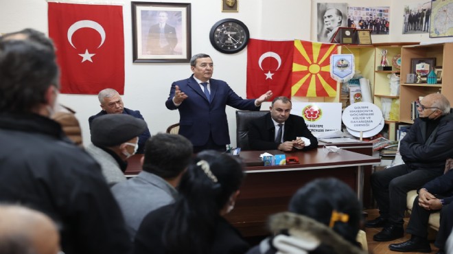 “Burada, mitingde sormuştum, burada en çok istediğiniz şey nedir, diye. Bizim en çok istediğimiz şey, imar planları ve kentsel dönüşüm, demiştiniz. Miting bitti, ceketimden çekip kentsel dönüşüm ne zaman diye sormaya devam edildi. Ben o gün, burası Narlıdere’den daha güzel olacak, dedim. Ben konuştuklarımı unutmam hiç, verdiğim sözü de unutmam. Biz belediye başkanı olur olmaz yaptığımız ilk iş kentsel dönüşüm planlarını hazırlamak oldu. Bir senede hazırladık. Kimsenin cesaret edemediğini yaptık. Çünkü ben buradaki vatandaşa söz verdim, bu makus talihi yıkalım, dedim. Yeşil alanı, parkı, sosyal tesisi olsun dedik. Gültepeli kadınlarla yaptığımız toplantıda biz akşamları sokağa çıkamıyoruz, dediler. Ben söylenenleri hiç unutmuyorum. Onun için hemen bu işe koyulduk. Biz bu işi yapmak istiyoruz. Meclis üyesi arkadaşlarımın hepsine teşekkür ediyorum. Tam bir uyum içinde, oybirliğiyle geçirdik planları meclisten. Bu bölgedeki 14 mahalle muhtarımıza bilgi verdik. Daha sonra şeffaf bir şekilde askıya çıktık.”