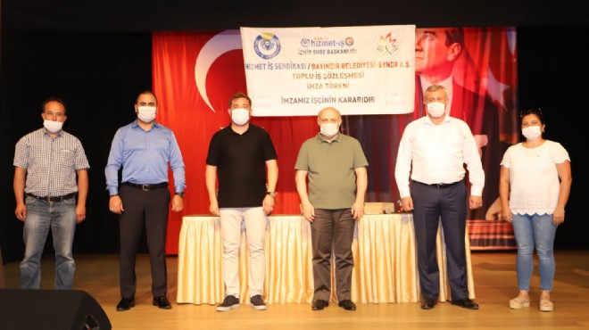 Bayındır Belediyesi Yahya Kerim Onart Kültür Merkezinde, gerçekleştirilen toplu iş sözleşmesi imza törenine Hizmet İş Sendikası Genel Başkan Vekili ve HAK-İŞ Genel Başkan Yardımcısı Av. Hüseyin Öz, Bayındır Belediye Başkanı Uğur Demirezen, Hak İş İl Başkanı ve Hizmet İş İzmir Şube Başkanı Gültekin Şimşek, BYNDR A.Ş. Genel Yönetim Kurulu Başkan Yardımcısı Ertuğrul Akgün ve diğer yöneticiler ile sendika temsilcileri katıldı.