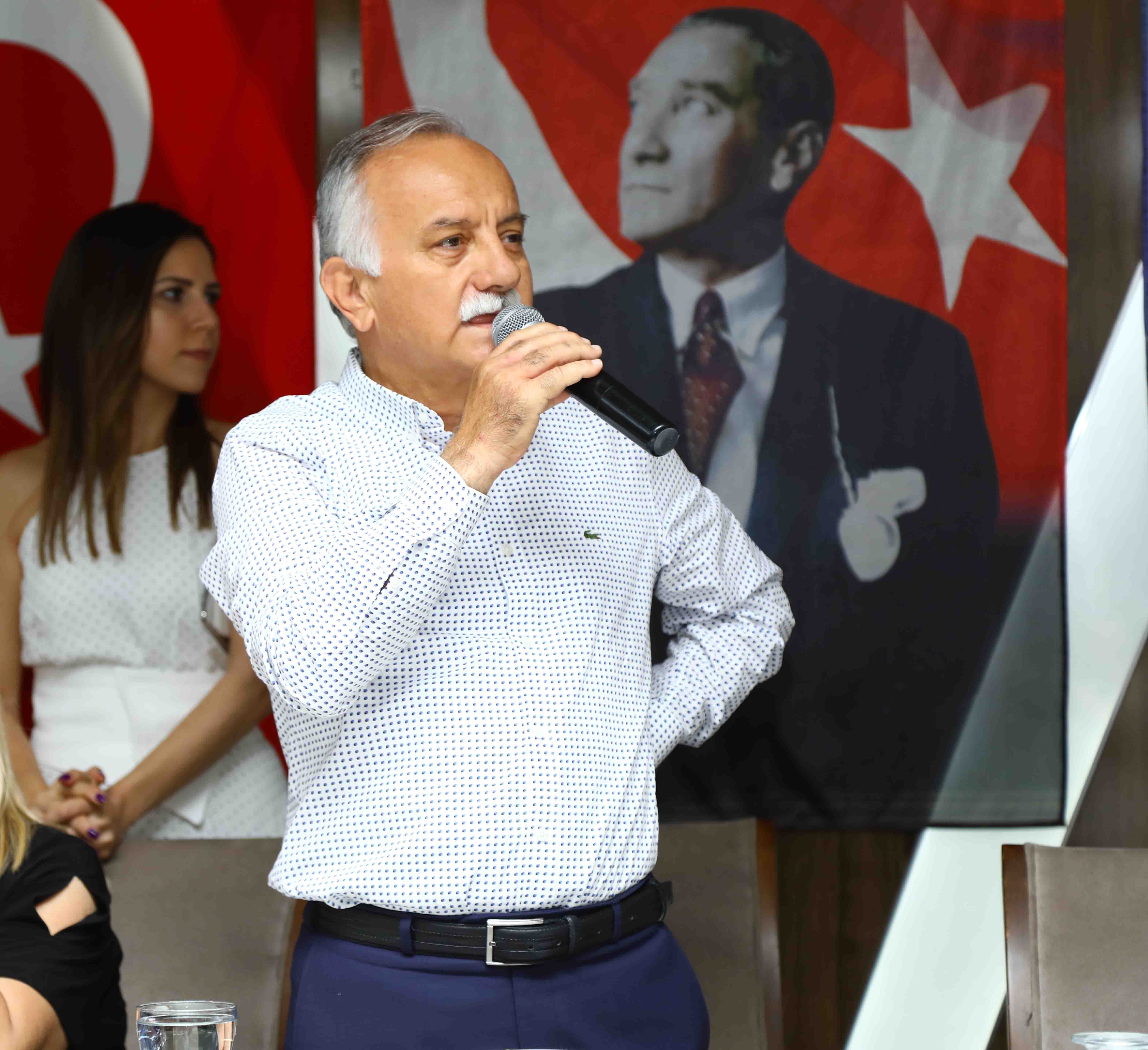 “Atatürk'ün kızları hepiniz hoş geldiniz. Biz bu salona erkekleri almıyoruz artık” diyerek konuşmasına esprili dille başlayan Bayraklı Belediye Başkanı Hasan Karabağ, “ Cumhuriyeti hanımlarla kurmuşuz. Cumhuriyeti yıkmak isteyenleri ancak sizinle durdururuz. Bayrağı, cumhuriyeti ve Atatürk'ü siz koruyacaksınız. Artık Bayraklı’da yaşayan olmak, Türkiye'de tanınmış bir ilçede yer almak demek. Eskiden gecekondu deyip geçilen, özellikle Bornovalı bayanlar var burada... Bizi istemediniz, meşalelerle yürüdünüz ama şimdi Bayraklılı olmak ayrıcalıklı oldu. Cumhuriyet kutlamalarının başkenti Bayraklı oldu. 29 Ekim'de Smyrna Meydanı sizi bekliyor. Zeybek oynamak isteyen, gösteriye katılmak isteyen herkesi bekliyoruz. 19 Mayıs'ta da 23 Nisan’da olduğu gibi yine Manavkuyu’daki Park Kafe’nin olduğu yerden başlayarak yürüyeceğiz. Hepinizi bekliyoruz. Artık nereye gitseniz; İzmir’den geldiğinizi öğrenenler ‘Bayraklı mı’ diye soruyor. Ne mutlu Bayraklılıyım diyene! Ne mutlu İzmirliyim diyene! Ne mutlu cumhuriyetçi insanlarımıza! Ne mutlu sizlere, anneler gününüzü kutluyorum” dedi.