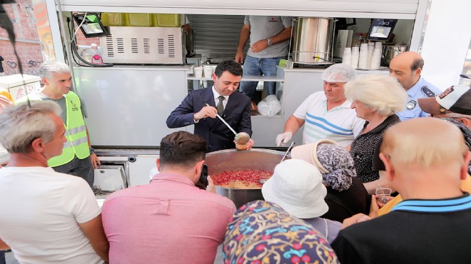 Bayraklı Belediyesi, Muharrem ayının manevi değerlerini yaşatmak ve bu özel günün anlamını tüm ilçeye ulaştırmak için birlikte, bereket ve dayanışmanın simgesi aşure dağıtımı gerçekleştirdi. Bu kapsamda, Sevgi Yolu, Haşim İşcan Caddesi, Değirmen Kafe ve Aşık Mahzuni Şerif Kültür Merkezi ve Cemevi’nde toplam 4 bin kişilik aşure ikram edildi. Bayraklı Belediye Başkanı İrfan Önal, dağıtım noktalarını ziyaret ederek vatandaşlarla buluştu, sohbet edip, dualar eşliğinde aşure kardı ve ilçe sakinlerine ikram etti. Bu kapsamda Aşık Mahzuni Şerif Kültür Merkezi ve Cemevi’nde de aşure ve Kerbela Şehitlerini anma töreni düzenlendi. Başkan Önal’a meclis üyeleri de eşlik etti. Sahnede sanatçılar tarafından seslendirilen deyişlerin ardından Cemevi Dedesi Cafer Kaygusuz’un okuduğu dua eşliğinde aşure karıldı ve dağıtıldı.