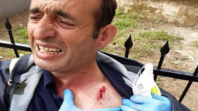 Olay, öğle saatlerinde Postacılar Mahallesi'nde meydana geldi. Bayraklı Belediyesi'nde temizlik görevlisi olarak görev yapan Çetin Çabuk, dezenfeksiyon çalışması yaptığı sırada kimliği belirsiz bir kişi ile tartışmaya başladı. Tartışmanın kavgaya dönüşmesi üzerine kimliğ belirsiz kişi, Çabuk'a kesici aletle saldırdı. Çabuk göğsünden yaralandı. Çevredekilerin ihbarı üzerine olay yerine sevk edilen sağlık ekiplerinin müdahalesinde hayati tehlikesi bulunmadığı belirlenen Çabuk, tedbir amaçlı olarak Ege Üniversitesi Hastanesi’ne kaldırıldı. Yaşanan olay nedeniyle tarafların birbirlerinden şikayetçi olmadıkları öğrenildi.(DHA)