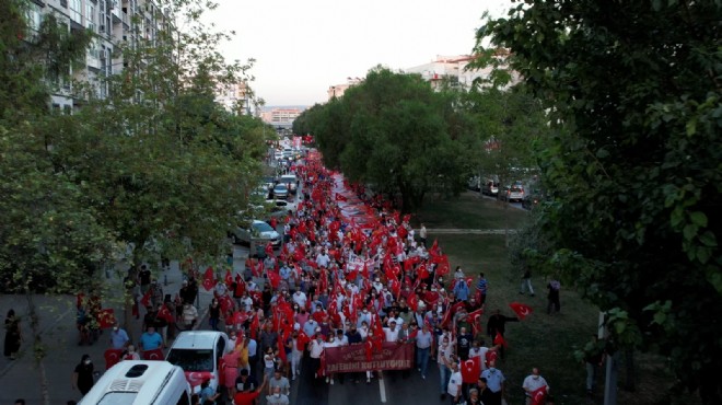 Özkanlar Migros Kafe önünde başlayan kortej yürüyüşüne binlerce vatandaş, belediye meclis üyeleri, çeşitli siyasi parti temsilcileri, STK’lar, spor kulüpleri, muhtarlar ve Bayraklı Belediyesi personeli katılım gösterdi. Coşkulu başlayan yürüyüş korteji, 4 km’lik bir mesafenin ardından Atatürk Heykeli önünde Bayraklılı vatandaşlar tarafından marşlar eşliğinde, karşılandı.