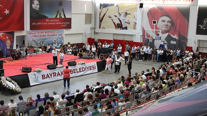 Bayraklı Belediyesi'nin bayramlaşma töreni Mustafa Kemal Atatürk Spor Salonu'nda gerçekleşti. Etkinliğe Başkan Hasan Karabağ'ın yanı sıra CHP Bayraklı İlçe Başkanı Cemalettin Alper, meclis üyeleri, muhtarlar, belediye personeli ve vatandaşlar katıldı.